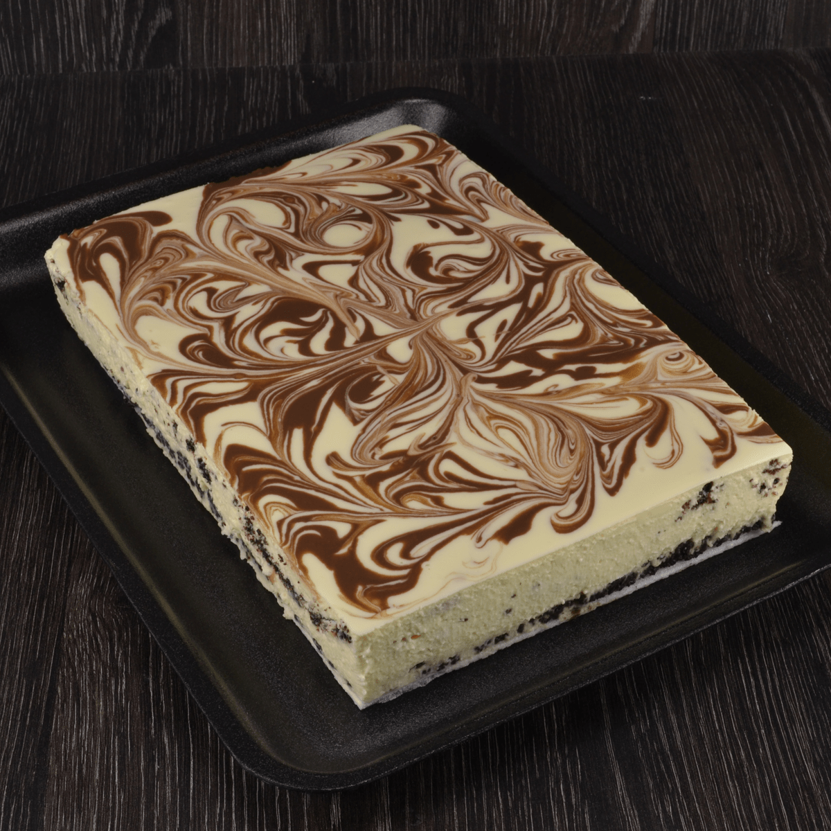 Exquisita combinación de galleta oreo, con crema y queso crema decorado con una fina salsa de chocolate